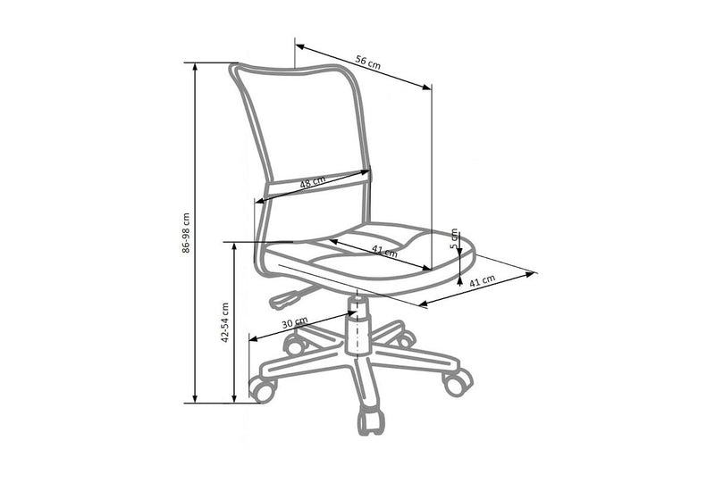 Detská stolička OLYMPIO. Základ tvorí konštrukcia s piatimi plastovými kolieskami. Mäkký sedák, potiahnutý látkou s membránou, ponúka pohodlie pri sedení. Sieťovaná chrbtová opierka zaistí prirodzené držanie tela a odvetrávanie. Vďaka jednoduchému ovládaciemu mechanizmu je možné ľahko upraviť výšku sedacej plochy podľa potreby. Vyberať je možné z niekoľkých farebných variácií.