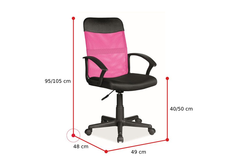 Detská stolička Viky Q-702. Ponúka vysoký komfort. Päť koliesok zaručuje tichý a šetrný pohyb po podlahovej krytine. Pevná konštrukcia je potiahnutá kvalitnou látkou, operadlo sieťovinou pre lepšiu priedušnosť. Mechanika stoličky umožňuje nastaviť výšku sedu.