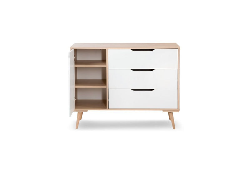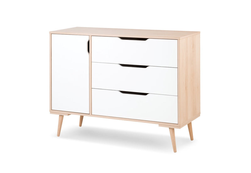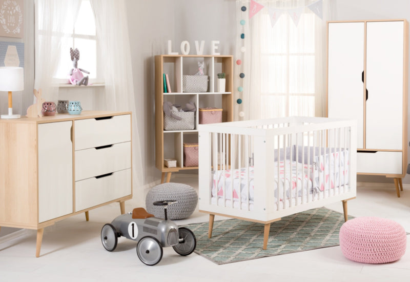 Detská zostava MACEK. Elegantná detská zostava v škandinávskom štýle vyrobený z kvalitného materiálu. Detská zostava sa skladá z detskej komody, detskej šatníkovej skrine, detského regálu a detskej postieľky s roštom. Produkty stoja na vyšších drevených nohách, ktoré im dodajú stabilitu a vzdušnosť. Súčasťou postieľky nie je matrac. Možnosť zakúpenia produktov aj samostatne, vďaka tomu si môžete vytvoriť detskú izbičku podľa Vášho priania.