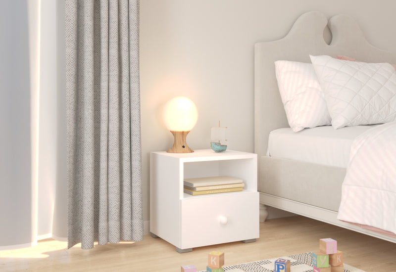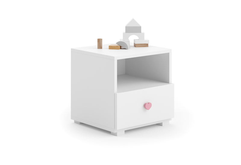 Detský nočný stolík INES. Je vyrobený z kvalitného materiálu s hrúbkou 1,8 cm. Pevná konštrukcia z kvalitnej dosky zaistí stabilitu a odolnosť proti poškodeniu. Stolík poskytuje dostatok úložného priestoru v podobe jednej zásuvky a otvorenej poličky. Stolík stojí na nízkych nožičkách. Na výber z niekoľkých dekorov.