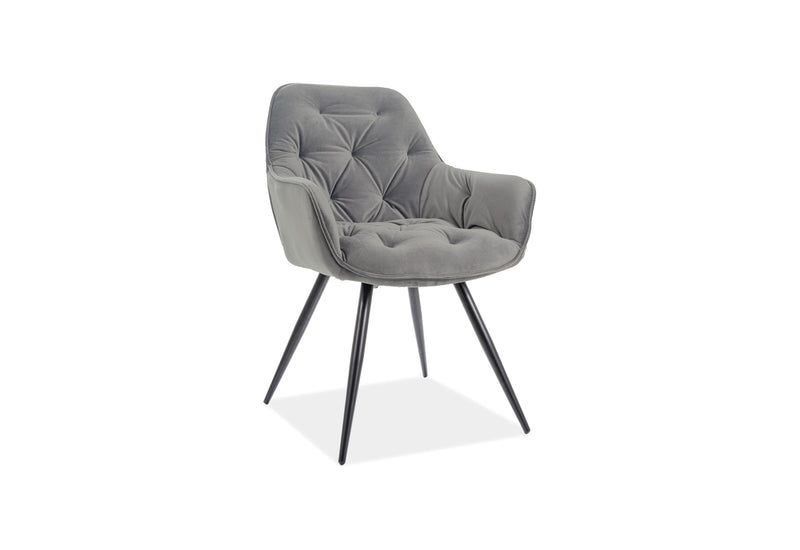 Jedálenská stolička BERRY Mat Velvet. Očarí vás svojím tvarom kresla v nadčasovom štýle. Konštrukcia stoličky je vyrobená z kovu a nohy sú v čiernej matnej farbe. Tie stoličke dodávajú požadovanú stabilitu a pevnosť. Veľmi komfortné sedáky sú potiahnuté na dotyk hebkou látkou s ozdobnými gombíkmi. Vyberať si môžete z viacerých ponúkaných farieb.