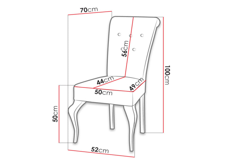 Jedálenská stolička CHERAS. Elegantná jedálenská stolička, ktorá vás ihneď zaujme svojim vzhľadom. Konštrukcia stoličky je vyrobená z dreva. Zaujímavé sú zahnuté nohy v bielej farbe. Stoličky dodávajú požadovanú stabilitu a pevnosť. Pohodlný sedák je potiahnutý na dotyk hebkou látkou s vysokou odolnosťou proti treniu a žmolkovaniu. Operadlo je prešité drobnými gombíkmi.