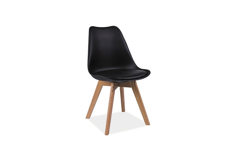 Jedálenská stolička DELIKA. Očarí vás svojím originálnym tvarom so škandinávskou eleganciou. Nohy stoličky sú vyrobené z dreva v prírodnej farbe. Pohodlné sedáky sú potiahnuté ekokožou.