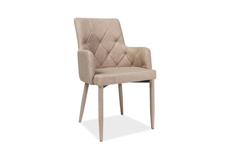 Jedálenská stolička DORA Vás očarí svojím originálnym vzhľadom a eleganciou. Nohy stoličky sú vyrobené z kovu takže jej dodávajú požadovanú stabilitu a pevnosť. Rovnako ako sedáky a opierky sú potiahnuté príjemnou látkou, ktorej farbu si môžete vybrať.