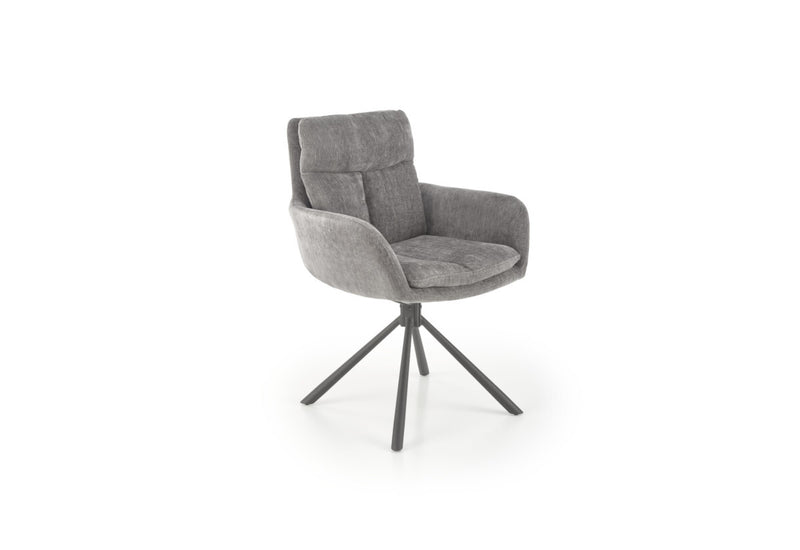 Jedálenská stolička KYLE. Ponúka elegantný vzhľad kresla. Komfortne tvarovaný sedák je potiahnutý príjemnou látkou so štýlovým prešitím. Zároveň poskytuje pohodlie pri sedení. Konštrukcia je vyrobená z kvalitných materiálov a zaistí pevnosť a stabilitu. Jedálenská stolička má k dispozícii otočný mechanizmus, ktorý umožňuje ľahké otáčanie 180 °. Moderný dizajn jedálenskej stoličky ľahko zladíte s interiérom kuchyne a jedálne. Možnosť výberu z viacerých čalúnení.