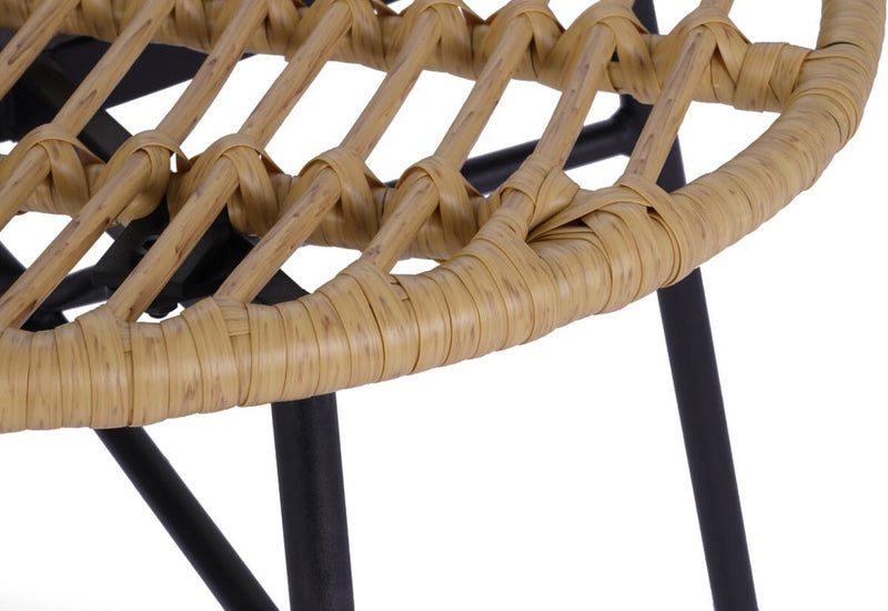 Jedálenská stolička MILUNA. Zaujme jednoduchými líniami moderného štýlu. Originálne riešená konštrukcia z kovu v čiernej farbe zaistí pevnosť a stabilitu. Telo stoličky je vyrobené z ratanu v prírodnom dekore. Použité materiály dodávajú stoličke ľahkosť a vzdušnosť. Vďaka svojmu spracovaniu nájde svoje využitie v interiéri aj exteriéri.