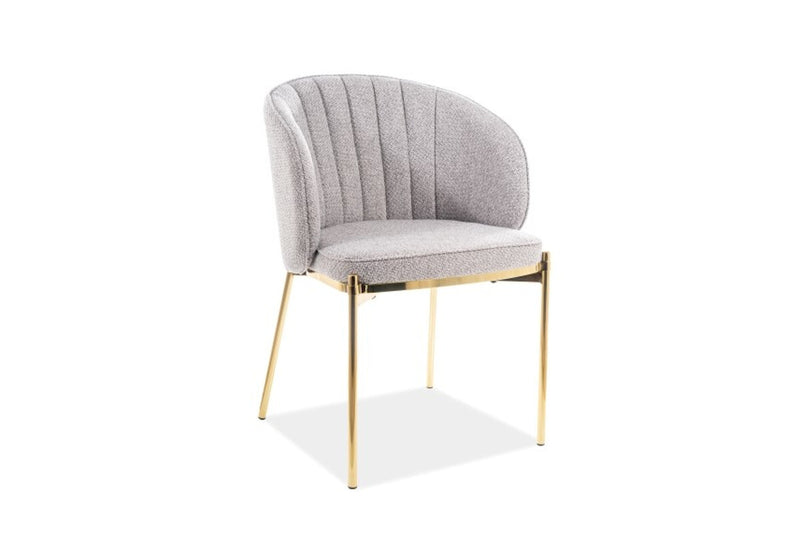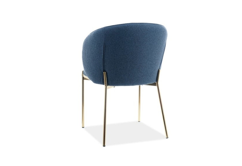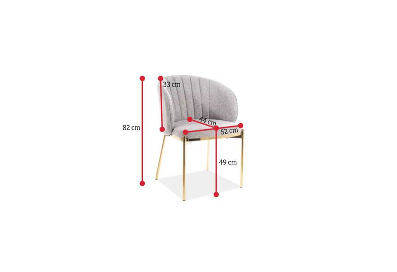 Jedálenská stolička POWER vás očarí svojím originálnym tvarom a farbami. Nohy stoličky sú vyrobené z kovu v zlatej farbe, ktoré stoličke dodávajú požadovanú stabilitu a pevnosť. Pohodlné sedáky sú potiahnuté látku, ktorá je veľmi príjemná na dotyk. Hladké prešívané operadlo vyzerá nadčasovo a moderne.