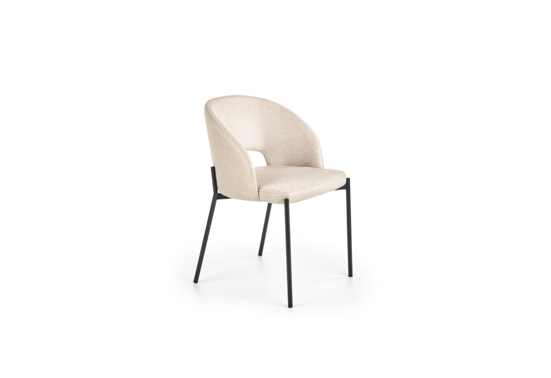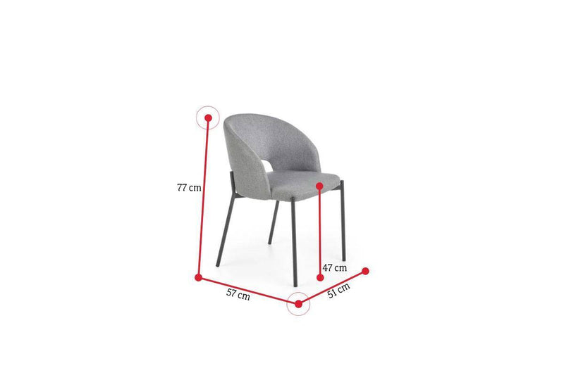 Jedálenská stolička VETLE. Moderné spracovanie jedálenskej stoličky. Kovové nohy v matnej čiernej farbe dodajú potrebnú stabilitu a pevnosť. Komfort pri sedení zaručí pohodlný čalúnený sedák. Moderný dizajn jedálenskej stoličky ľahko zladíte s interiérom kuchyne a jedálne. Vybrať si môžete z viacerých ponúkaných čalúnení.