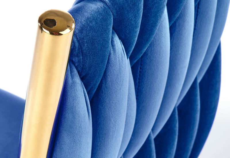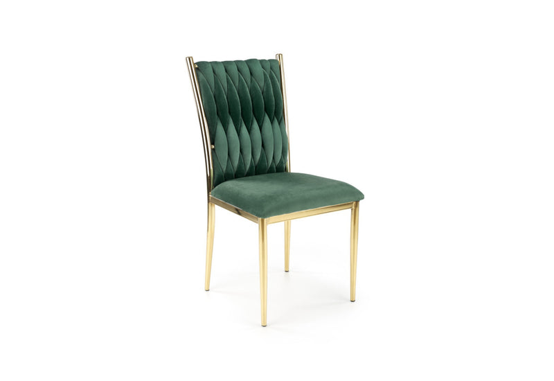 Jedálenská stolička WONKY. Moderné spracovanie jedálenskej stoličky. Kovové nohy v zlatej farbe dodajú potrebnú stabilitu a pevnosť. Komfort pri sedení zaručí pohodlný sedák s opierkou chrbta, ktoré sú potiahnuté príjemnou látkou s výrazným prešitím. Moderný dizajn jedálenskej stoličky ľahko zladíte s interiérom kuchyne a jedálne. Možnosť výberu farby čalúnenia.