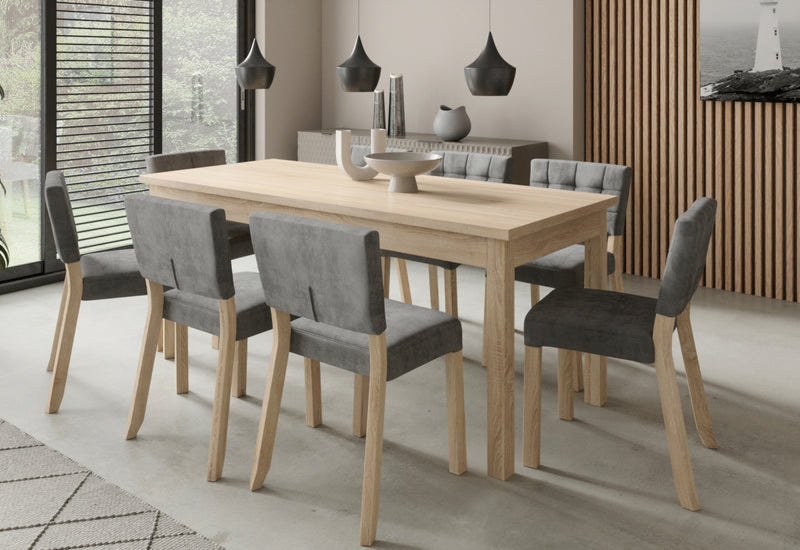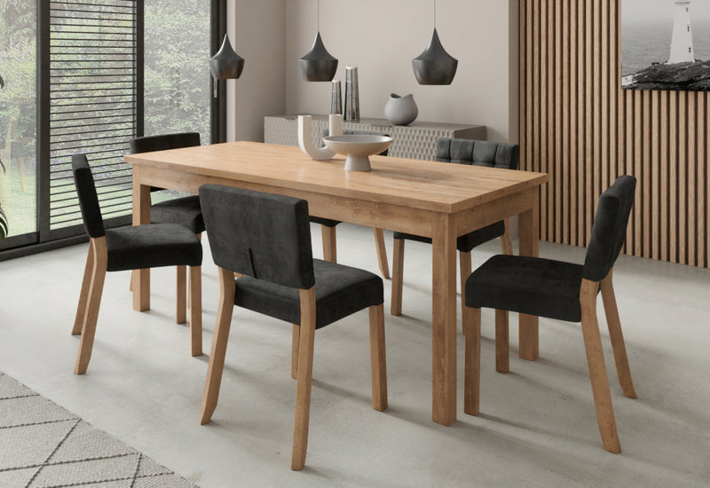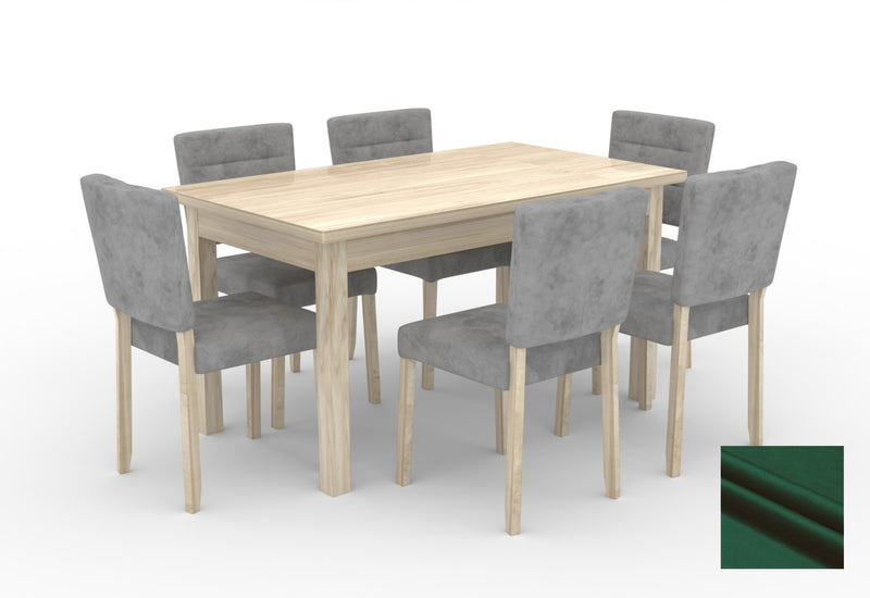 Jedálenská zostava LOPOS 2. Zaujme tradičným dizajnom. Obdĺžnikový jedálenský stôl je vyrobený z kvalitnej dosky s hrúbkou 3,2 cm, ktorá je posadená na pevných nohách. Jedálenské stoličky z bukového dreva sú očalúnené na dotyk s príjemnou látkou. Jedálenská zostava sa skladá zo 6 stoličiek a rozkladacieho stola. Možnosť rozloženia stola až na 180 cm. Vďaka svojmu prevedeniu bude skvelým doplnkom jedálne doma aj na chalupe. Výber z viacerých dekorov a čalúnenia.