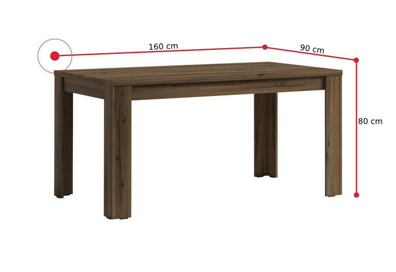 Jedálenský stôl AVINON. Zaujme moderným dizajnom a kvalitným spracovaním. Je vyrobený z kvalitného materiálu a opatrený ABS hranami, ktoré chránia pred mechanickým poškodením a vlhkosťou. Vrchná jedálenská doska je posadená na moderne riešených nohách. Kombinovať môžete s ďalšími produktmi z radu AVINON.