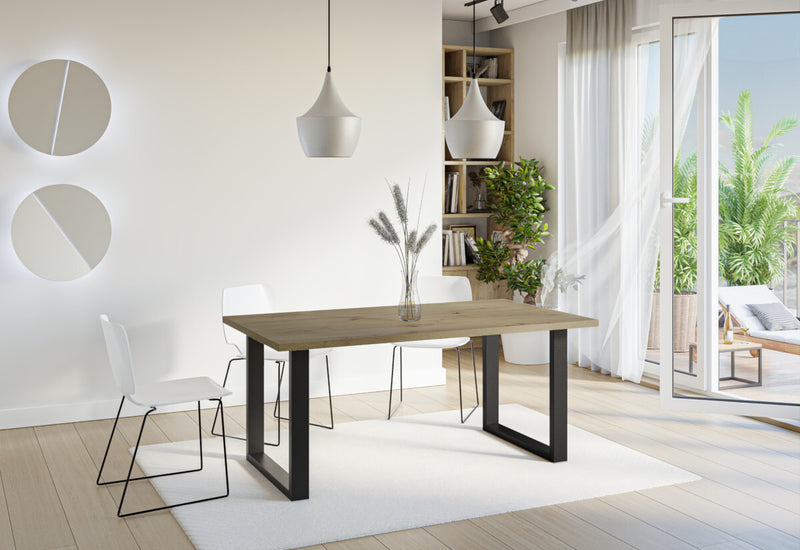 Jedálenský stôl BRUCA. Zaujme svojím moderným dizajnom. Je vyrobený z kvalitného materiálu, ktorý je opatrený ABS hranami. Tie chránia materiál pred mechanickým poškodením a vlhkosťou. Vrchná jedálenská doska je posadená na moderne riešených nohách. Možnosť výberu dekoru.