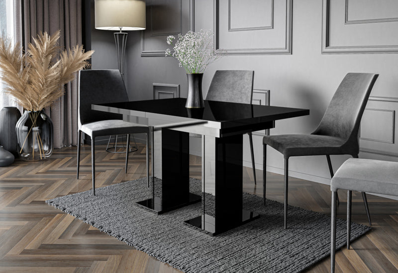 Jedálenský stôl GLOSSY. Zaujme svojím moderným dizajnom. Je vyrobený z kvalitného materiálu, ktorý je opatrený ABS hranami. Tie chránia materiál pred mechanickým poškodením a vlhkosťou. Vrchná jedálenská doska je posadená na moderne riešených nohách. Stôl je možné rozložiť. Možnosť výberu dekoru.
