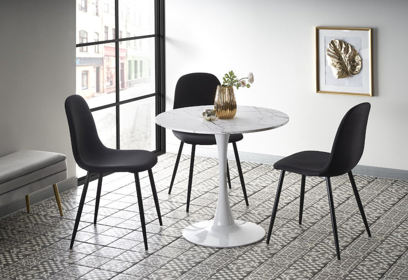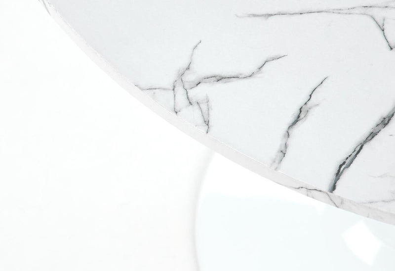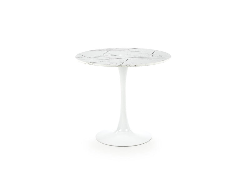 Okrúhly jedálenský stôl VENDE. Základ tvorí kovová noha s kruhovým podstavcom. Je tak zaistená stabilita a pevnosť celého stola. Horná okrúhla doska je vyrobená z kvalitného lamina v dekore mramoru. Súčasťou je ABS hrana. Lamino chráni pred vlhkosťou a mechanickému poškodeniu. Vďaka svojim rozmerom nájde svoje využitie aj v menších priestoroch.