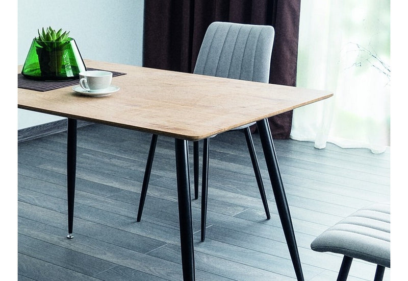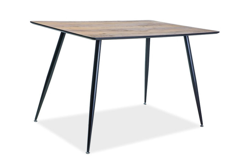 Jedálenský stôl ROMULUS vyzerá vkusne a elegantne. Doska stola poskytuje dostatok priestoru. Vyrobená je z kvalitného lamina v dekore orech. Má čierne kovové nohy. Stôl je vhodný pre štyri osoby.