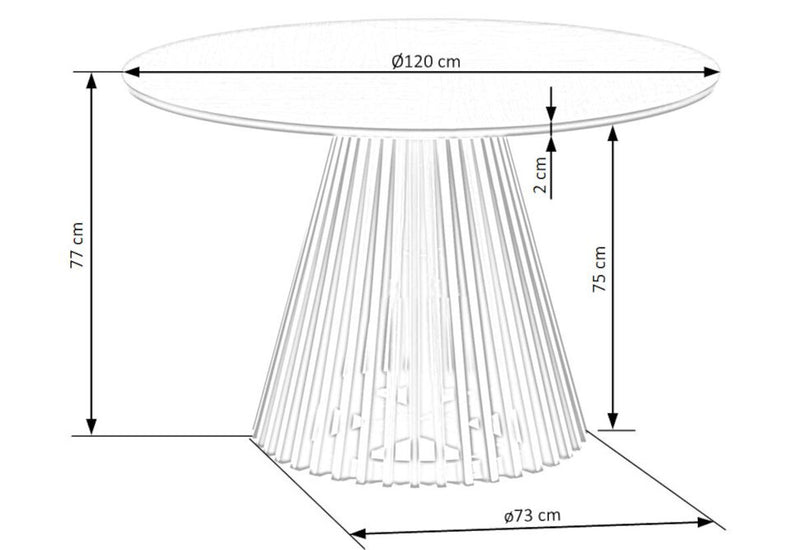 Rozkladací jedálenský stôl YAKI. Jeho industriálny vzhľad zaujme netradičným a nápaditým dizajnom. Základ tvorí kovová konštrukcia v čiernej farbe, ktorá zaisťuje požadovanú pevnosť a stabilitu. Priestranná jedálenská doska okrúhleho tvaru je vyrobená v kombinácii pevnej MDF dosky s dyhou a masívu v dubovom dekore. Vďaka netradičnému vzhľadu sa ľahko stane dominantou každej kuchyne či jedálne.