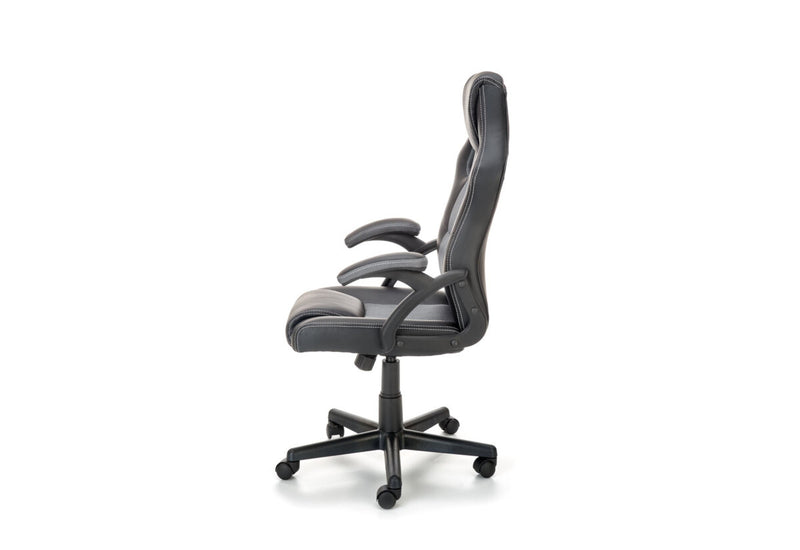 Kancelárska stolička BIRKEL. Kancelárska stolička ponúka vysoký komfort. Pevnosť a stabilitu zaistí konštrukcia s piatimi kolieskami. Telo stoličky je potiahnuté kvalitnou ekokožou v kombinácii s látkou. Mäkký sedák ponúka pohodlie pri sedení. Vďaka mechanizmu TILT je možné ľahko upraviť výšku sedacej plochy podľa potreby. Vďaka svojmu štýlu si nájde miesto v každej pracovni. Možnosť výberu z dvoch čalúnení.