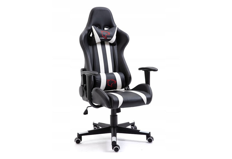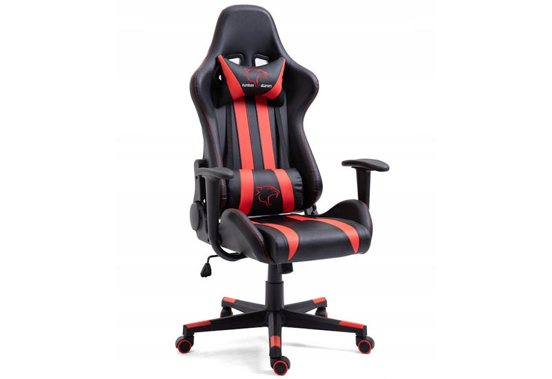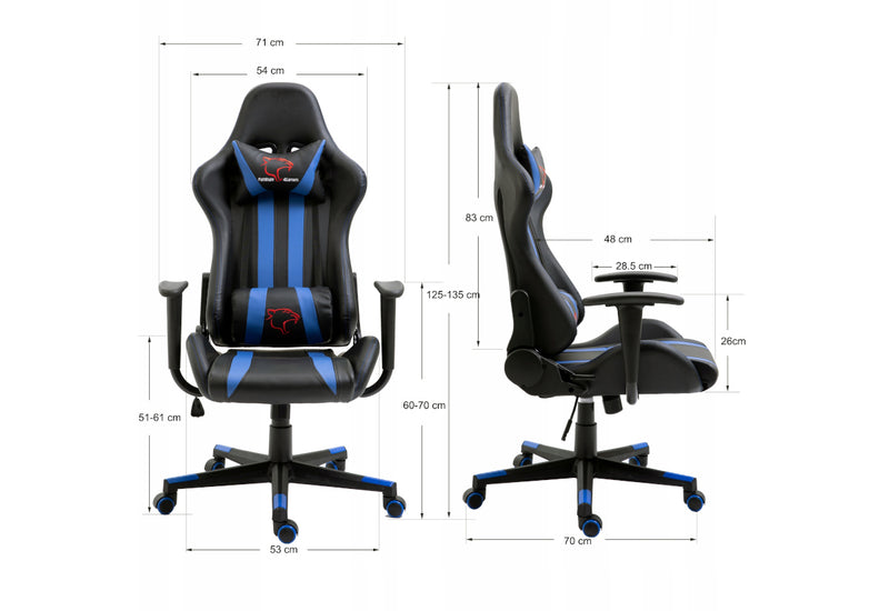 Kancelárska stolička KORAD FG-33. Herný stolička potiahnutá ekokožou ponúka vysoký komfort. Umožňuje nastavenie výšky sedu. Nosnosť 130 kg je zaručená veľmi odolným podstavcom s piatimi kolieskami zo silikónovej gumy, ktoré zaručujú tichý a šetrný pohyb po podlahovej krytine. Vďaka TILT mechanizmu môžeme kreslo nakláňať a voľne relaxovať. Sedenie nám spríjemní mäkký a pohodlný vankúš pod krk a bedrovú oblasť.