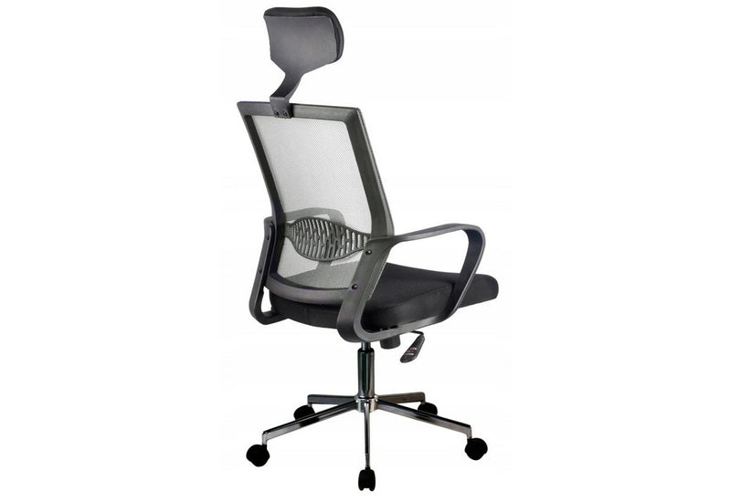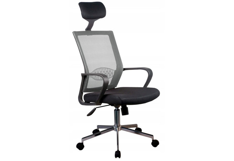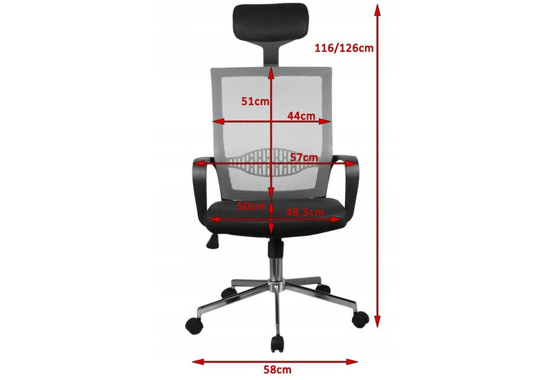 Kancelárska stolička KORAD OCF-9. S nosnosťou 125 kg má sedadlo nastaviteľný mechanizmus hore a dole, podstavec z chrómovanej ocele a päť koliesok zaisťuje tichý a jemný pohyb po podlahovej krytine. Podrúčky sú vyrobené z vysoko kvalitného plastu a so sieťovanou opierkou vytvárajú moderný dizajn, ktorý sa hodí do každej kancelárie a miestnosti. Vďaka mechanizmu TILT nám stolička umožňuje hojdanie.