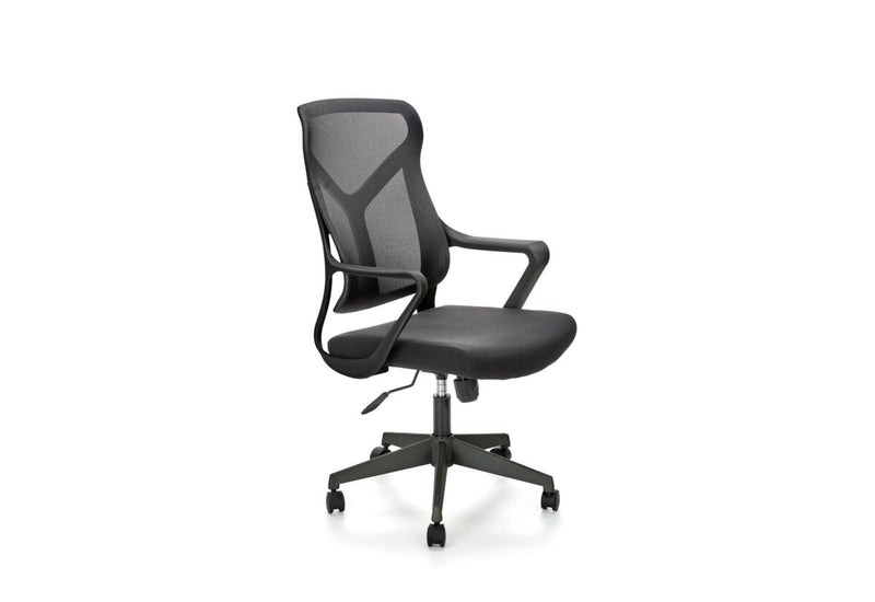Kancelárska stolička PITRO. Stolička ponúka vysoký komfort. Sedák je potiahnutý odolnou látkou a vyplnený PUR penou. Päť koliesok umiestnených v kovovej základni zaručuje tichý a šetrný pohyb po podlahovej krytine. Mechanika stoličky je synchrónna a má funkciu hojdania s nastaviteľnou tuhosťou a nataviteľnú výšku sedu. Výrazné prehnutie opierky stoličky podporuje správne držanie tela, predovšetkým v oblasti bedier. Materiál výpletu chrbta je priedušná sieťovina, ktorá odvetráva chrbát.