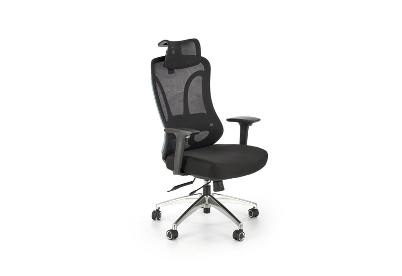 Kancelárska stolička SHURI. Zaujme svojím vzhľadom v modernom štýle. Je vyrobená z kvalitného materiálu. Päť koliesok zaručuje tichý a šetrný pohyb po podlahovej krytine. Pevná konštrukcia je potiahnutá kvalitnou látkou, operadlo sieťovinou pre lepšiu priedušnosť. Disponuje synchrónnou mechanikou. Synchrónna mechanika poskytuje zdravé a ergonomické sedenie, vďaka čomu ju môžeme odporučiť aj na každodenné dlhodobé sedenie. Vhodná do kancelárie či pracovne.