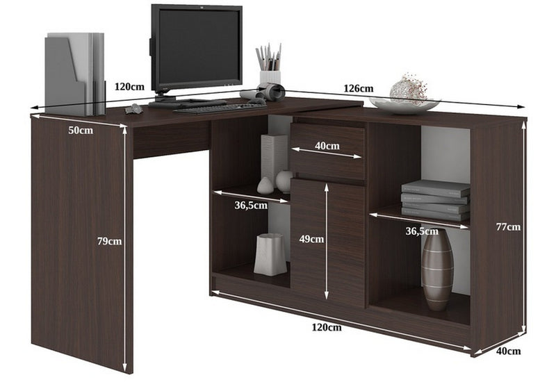 Kancelárska zostava ARMARIA B-17 je vyrobená z kvalitného lamina hrúbky 16 mm. Lamino je opatrené ABS hranami, ktoré ho chráni pred mechanickým poškodením a vlhkosťou. Zostava sa skladá z jednoduchého kancelárskeho stola a k nemu pripojené komody, ktorá poskytuje dostatok úložného priestoru. Kancelárska zostava je do tvaru písmena "L". Vyberať môžete z viacerých dekorov.