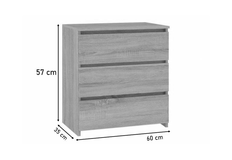 Komoda ARMARIA CL3. Vyrobená je z kvalitného materiálu hrúbky 16 mm. ABS hrana chráni laminovou dosku pred mechanickým poškodením a vlhkosťou. Komodu tvoria tri priestranné zásuvky. K dostaniu je vo viacerých dekoroch.