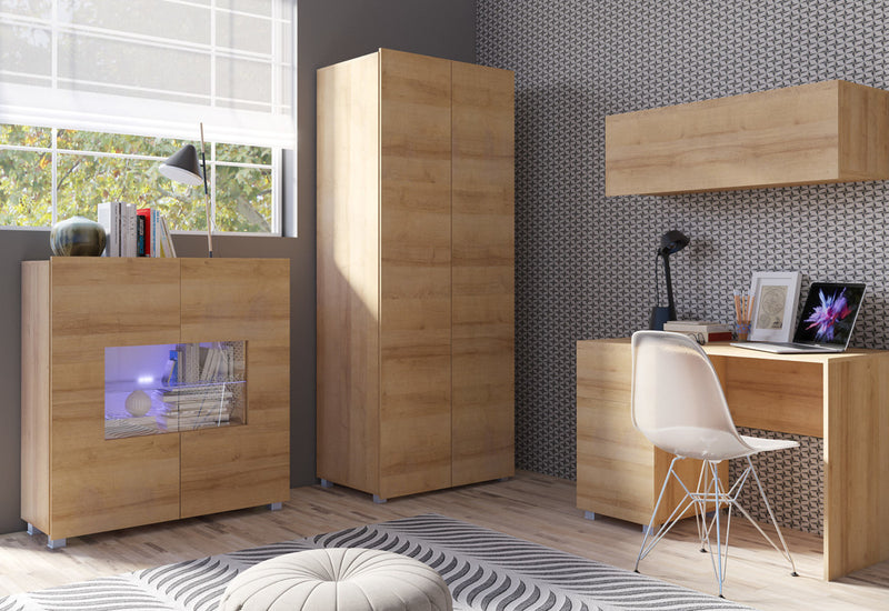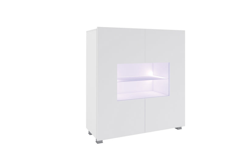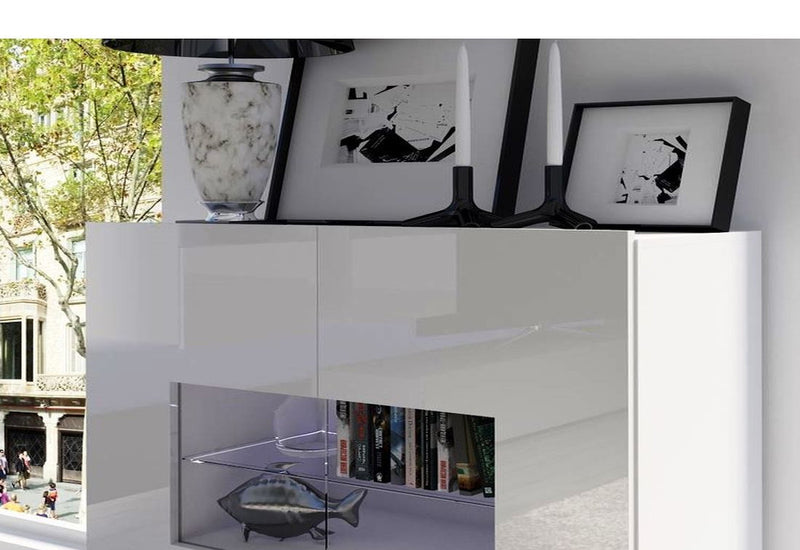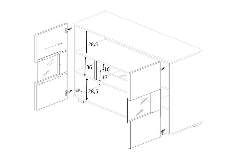 Komoda BRINICA. Je vyrobená z kvalitního materiálu a tvrdeného skla s ABS hranami. Tie chránia lamino pred mechanickým poškodením a vlhkosťou. Navyše sa pýši bezúchytovým otváraním. Komora poskytuje dostatok úložného priestoru v podobe políc, ktoré sú schované za čiastočne presklenými dvierkami. Môžete vyberať variant s LED osvetlením.