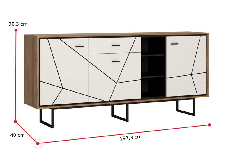 Komoda BRONO 2, 197,3x90,3x40, dub catania/ biela lesk/ čierna -  - 0