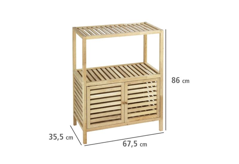 Komoda FRANCIO XL. Upúta Vás škandinávskym štýlom a rovnými líniami s vetracími otvormi. Vyrobená je z masívneho orechového dreva, ošetrené prírodným olejom na drevo. Zachovaná je štruktúra dreva. Jednoduchý dizajn a praktické využitie. Súčasťou sú dve otvorené police. V spodnej časti nájdete úložný priestor v podobe skrinky s dvoma dvierkami vrátane úchytov na jednoduchú manipuláciu. Stojí na vyšších nožičkách. Vhodný do kúpeľne, predsiene alebo obývacej izby. Odporúčame kombinovať s ďalšími produktmi z radu FRANCIO.