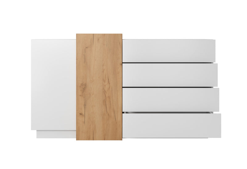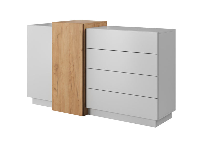 Komoda LAMU. Komoda Vás zaujme jednoduchým dizajnom v modernom štýle. Je vyrobená z udržateľného kvalitného materiálu. Pevná konštrukcia zaistí stabilitu a odolnosť proti poškodeniu. Komoda disponuje dostatkom úložného priestoru v podobe políc a zásuviek. Dvierka skriniek a zásuviek nemajú úchytky, otvárajú sa pomocou systému PUSH TO OPEN. Produkt môžete doplniť ďalšími produktmi z radu LAMU.