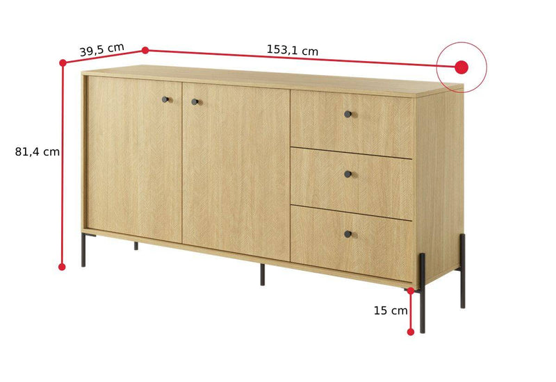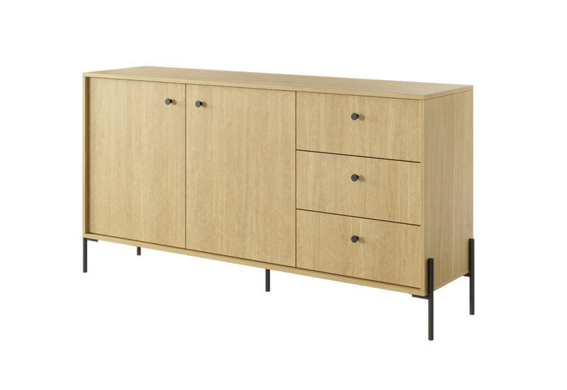 Komoda LANDY. Zaujme moderným dizajnom a kvalitným spracovaním. Je vyrobená z kvalitného materiálu a opatrená ABS hranami, ktoré chránia pred mechanickým poškodením a vlhkosťou. Komoda ponúka množstvo úložného priestoru v podobe dvoch skriniek s dvierkami, ktoré sú rozdelené policami a tri zásuvky. Stojí na čiernych kovových nožičkách, ktoré jej dodajú stabilitu a vzdušnosť. Kombinovať môžete s ďalšími produktmi z radu LANDY.