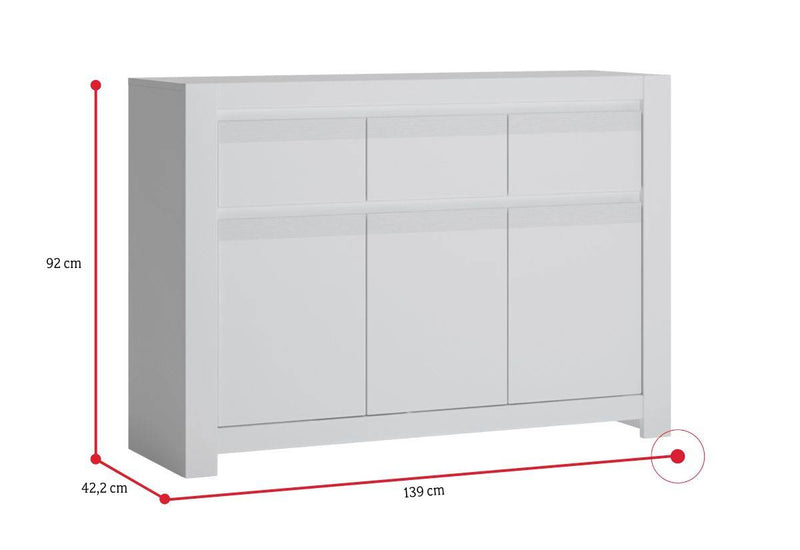 Komoda MANOL 2. Moderná komoda zaujme svojim jednoduchým dizajnom. Vyrobená je z kvalitných materiálov. Súčasťou je úložný priestor v podobe troch zásuviek a dvoch skriniek s dvierkami s bezúchytovým systémom. Skrinky sú vo vnútri rozdelené jednou policou. Dostatok miesta ponúka aj horná doska komody. Možnosť kombinovať s ďalšími produktmi z radu MANOL.