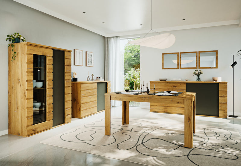 Komoda MIROLA 2. Zaujme moderným dizajnom a kvalitným spracovaním. Je vyrobená z kvalitného materiálu a opatrená ABS hranami, ktoré chránia pred mechanickým poškodením a vlhkosťou. Komoda ponúka množstvo úložného priestoru v podobe dvoch skriniek s posuvnými dvierkami, ktoré sú rozdelené policami. Kombinovať môžete s ďalšími produktmi z radu MIROLA.