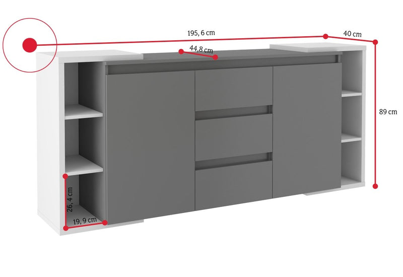 Komoda MONA, 195,6x89x44,8, antracit/svetlo sivá -  - 0