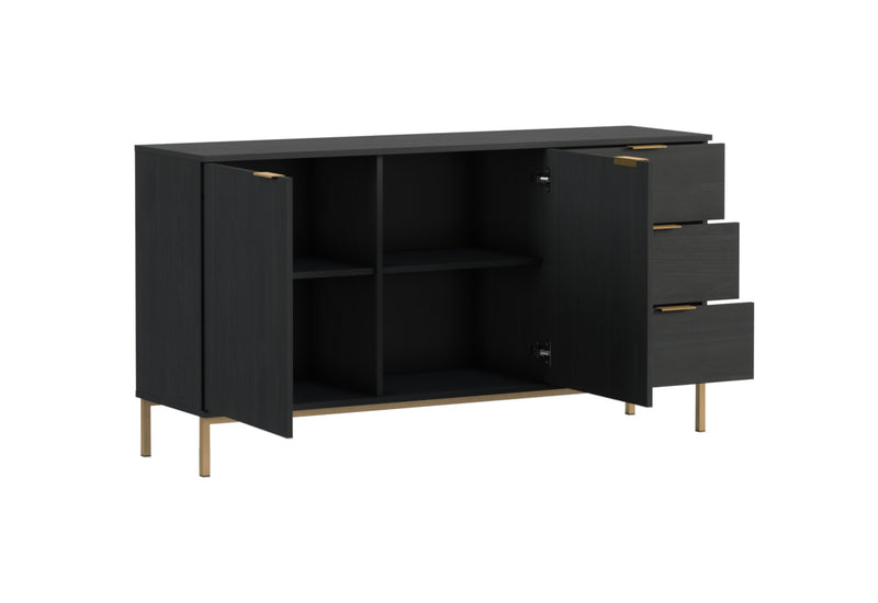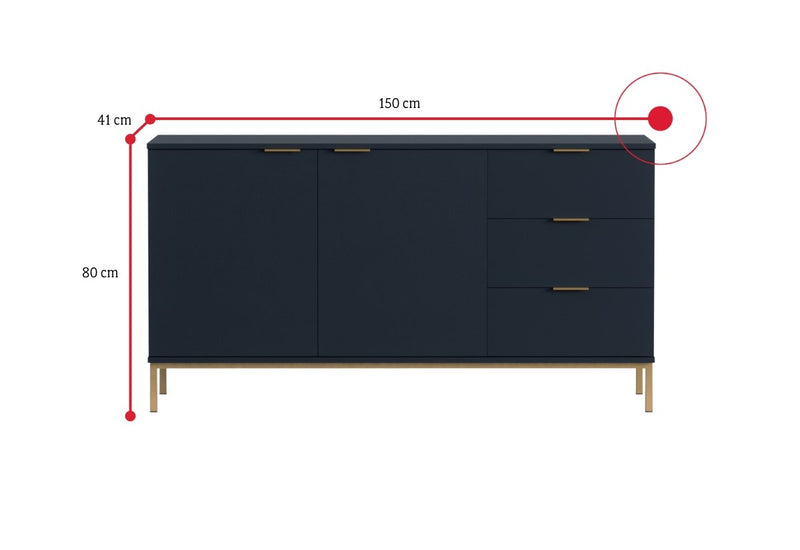 Komoda MULA. Zaujme jednoduchými líniami moderného štýlu. Je vyrobená z kvalitných materiálov, ktoré sú opatrené ABS hranou. ABS hrana chráni pred mechanickým poškodením a vlhkosťou. Pevnosť a stabilitu zaistia vyššie kovové nohy v zlatej farbe. Komoda disponuje veľkým množstvom úložného priestoru v podobe dvoch skriniek s dvierkami a troch zásuviek, ktoré sú opatrené úchytom. Vďaka svojmu vzhľadu nájde miesto v každom interiéri. Možnosť voľby z dvoch dekorov.