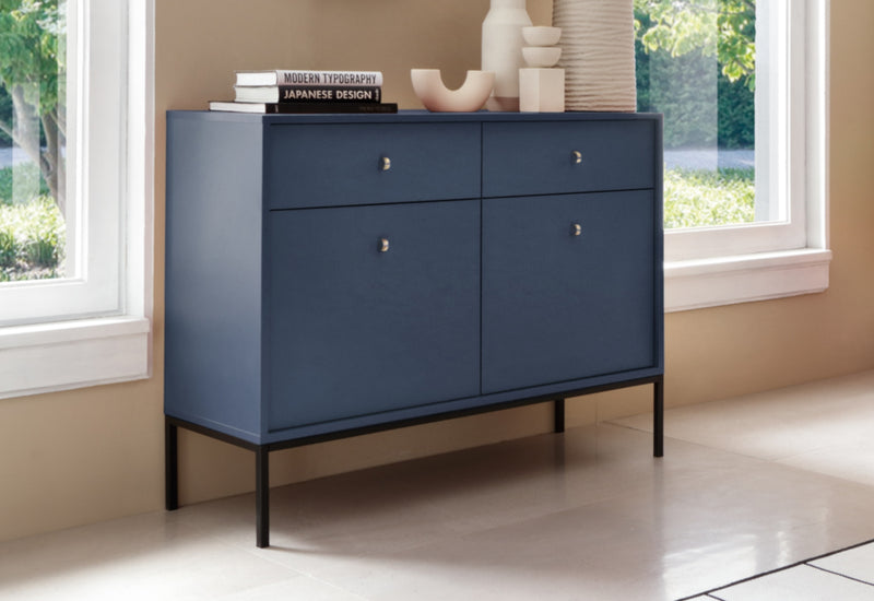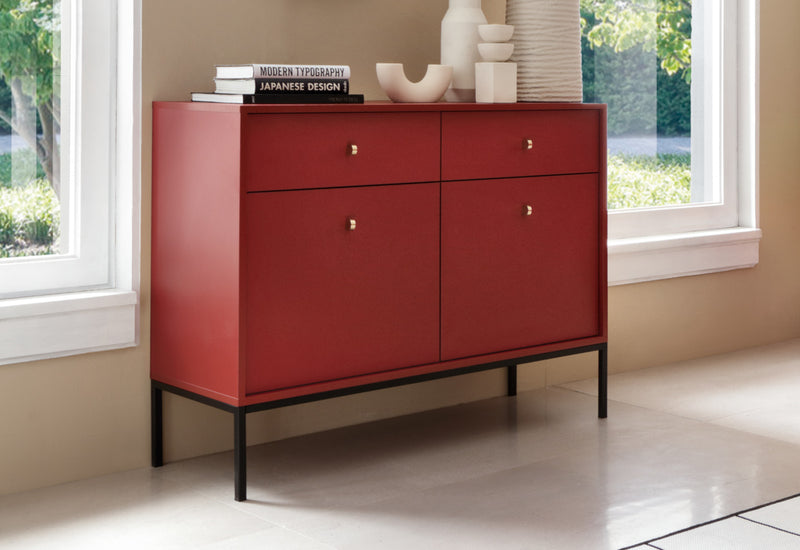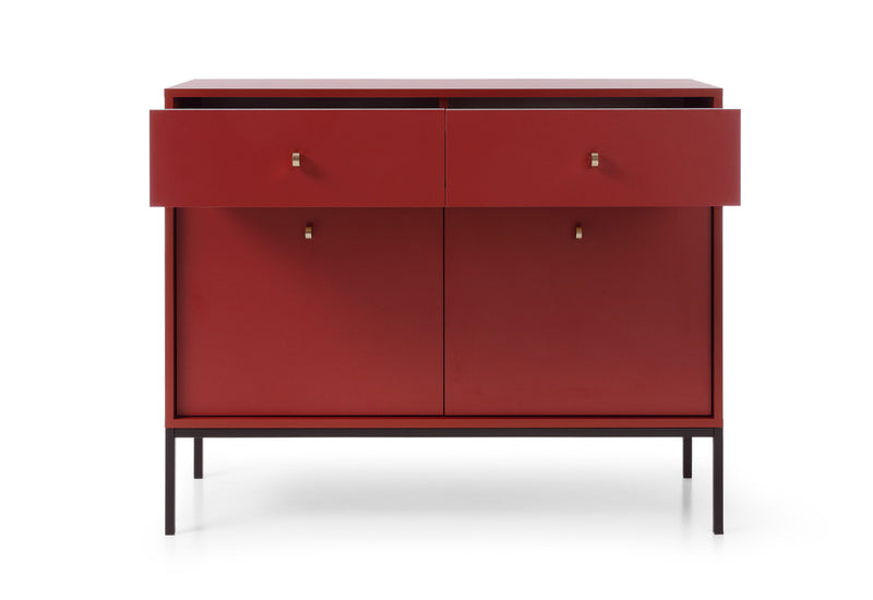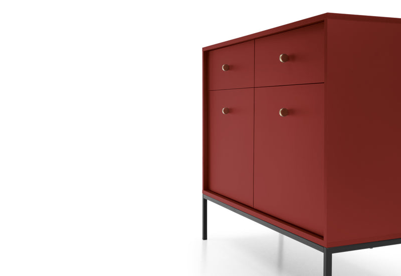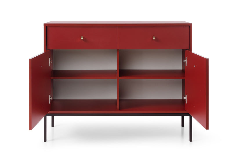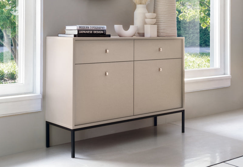 Komoda NANO. Moderná štýlová komoda je vyrobená z kvalitného materiálu v sile 1,6 cm s ABS hranami. Súčasťou komody je úložný priestor v podobe dvoch šuplíkov s dvoma skrinkami s uzatvárateľnými dvierkami, za ktorými sa nachádzajú dve poličky. Vybavená je zlatými úchytmi pre ľahšiu manipuláciu. Stojí na vysokých kovových nohách v čiernej farbe pre väčšiu stabilitu a vzdušnosť. Možnosť výberu z viacerých farebných prevedení. K dispozícii sú aj ďalšie produkty z rovnakého radu NANO.