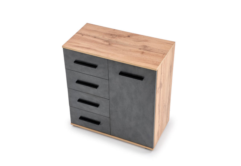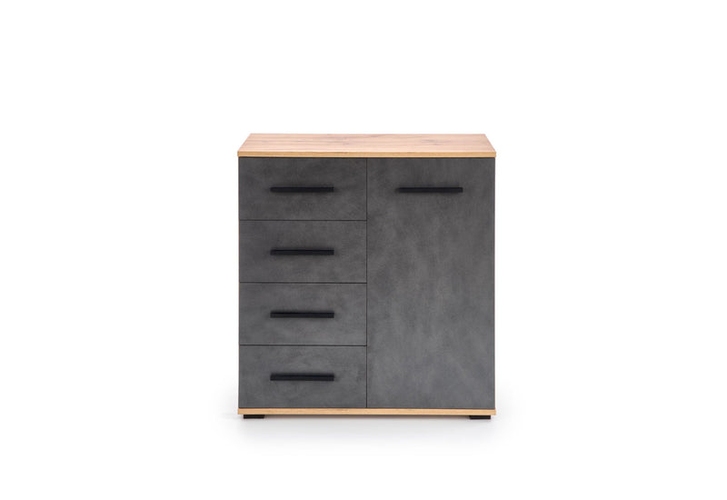 Komoda PASTILA II. Vyrobená je z kvalitného lamina s ABS hranami. Tie chránia materiál pred mechanickým poškodením a vlhkosťou. Komoda sa skladá zo štyroch zásuviek a z jednej skrinky s dvierkami, ktoré vytvárajú dostatok úložného priestoru. Vybavené úchytmi pre ľahšiu manipuláciu. Komoda stojí na nízkych nožičkách, ktoré dodajú komode stabilitu a vzdušnosť. Možnosť výberu z viacerých dekorov . Taktiež si môžete zvoliť stranu pre umiestnenie šuplíkov a skrinky. Odporúčame kombinovať s ďalšími produktmi rady PASTILA.
