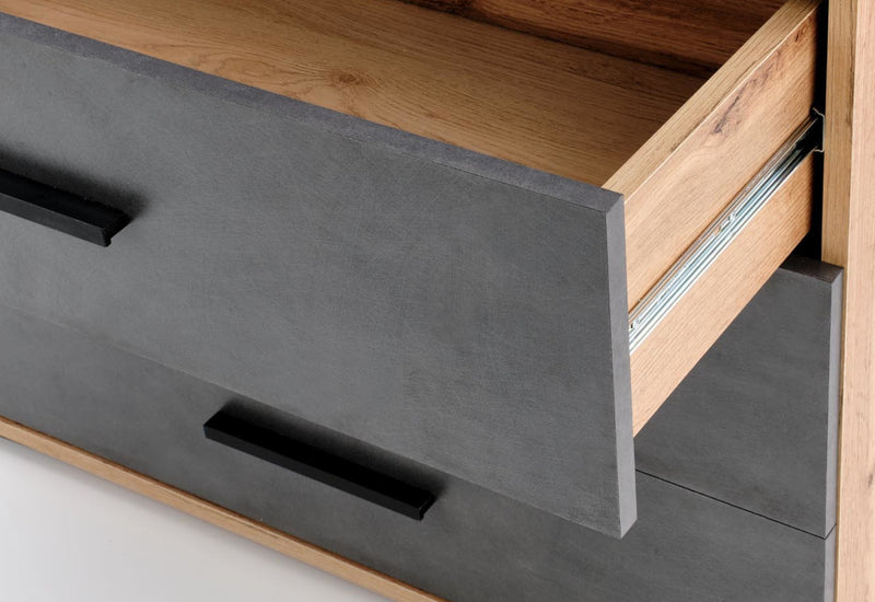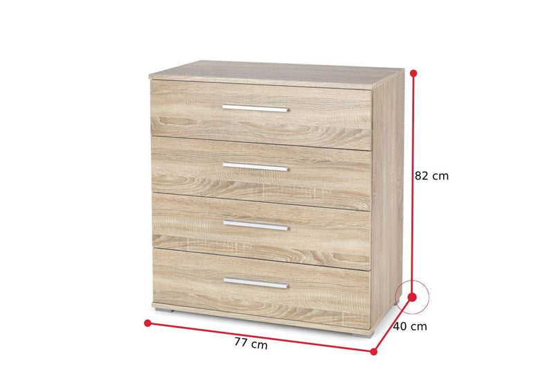 Komoda PASTILA III. Vyrobená je z kvalitného materiálu s je ABS hranami. Tie chránia materiál pred mechanickým poškodením a vlhkosťou. Komoda sa skladá zo štyroch zásuviek, ktoré vytvárajú dostatok úložného priestoru. Vybavené úchytmi pre ľahšiu manipuláciu. Komoda stojí na nízkych nožičkách, ktoré dodajú komode stabilitu a vzdušnosť. Možnosť výberu z viacerých dekorov. Odporúčame kombinovať s ďalšími produktmi rady PASTILA.