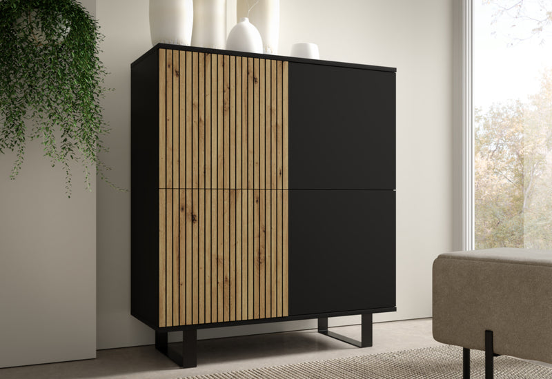 Komoda RASS. Komoda Vás zaujme jednoduchým dizajnom v modernom štýle. Je vyrobená z udržateľného kvalitného materiálu. Pevná konštrukcia zaistí stabilitu a odolnosť proti poškodeniu. Komoda disponuje dostatkom úložného priestoru v podobe skriniek s dvierkami s policami. Dvierka skriniek nemajú úchytky, otvárajú sa pomocou systému PUSH TO OPEN. Možnosť voľby nožičiek. Produkt môžete doplniť ďalšími produktmi z radu RASS.