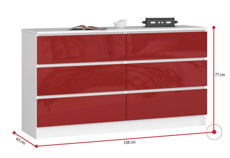 Komoda ROZALIE 2. Komoda Vás zaujme jednoduchými líniami moderného štýlu. Je vyrobená z kvalitného materiálu, ktorý je opatrený ABS hranou. Tá chráni materiál pred mechanickým poškodením. Ponúka dostatok úložného priestoru v podobe šiestich zásuviek. Vďaka svojmu vzhľadu nájde miesto v každom interiéri. Možnosť výberu z viacerých dekorov.