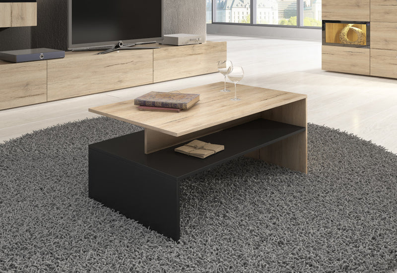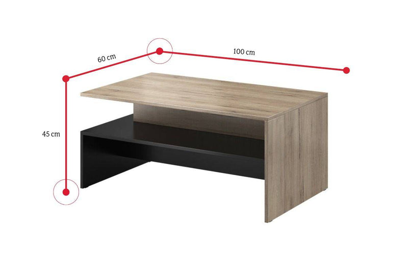 Konferenčný stolík BELLEZA. Je vyrobený z kvalitných materiálov. Disponuje priestrannou odkladacou plochou a otvorenou policou, ktorá je prístupná z troch strán stolíka. Zaujme moderným prevedením a kontrastnou kombináciou farieb. Vyberať možno z niekoľkých farebných dekorov.