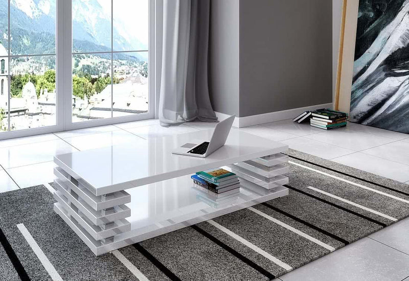 Konferenčný stolík DOURO. Je vyrobený z kvalitných materiálov. Hrany nábytku sú zakončené lištou PVC. Súčasťou je otvorený odkladací priestor pod hlavnou doskou stolíka. Nožičky majú plastové klzáky, ktoré chránia podlahovú krytinu. Môžete si vybrať z niekoľkých farebných variantov a troch výšok.