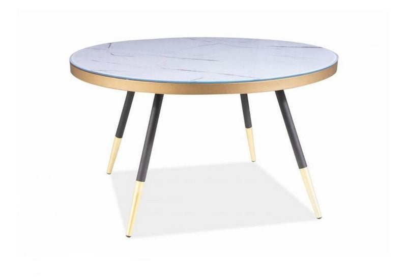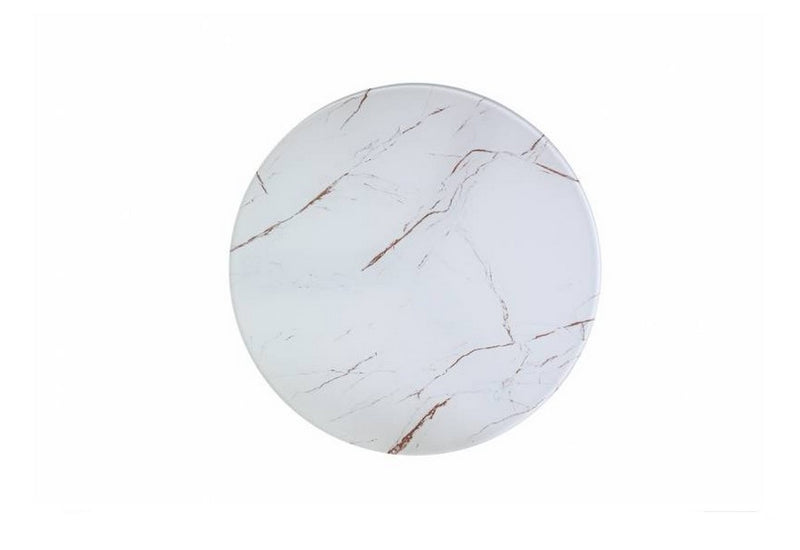 Konferenčný stolík GAVE B vás očarí svojím nadčasovým dizajnom. Na kovovej konštrukcii je položená okrúhla čierna doska z tvrdeného skla v dekore imitujúcim biely mramor. Kvalitný guľatý konferenčný stolík Vás bude tešiť dlhé roky v pohodlí vášho domova.