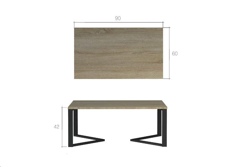 Konferenčný stôl REVIN. Doska stolíka je vyrobená z lamina hrúbky 1,8 cm dostupného v troch farbách. Tvarované nohy sú vyrobené z kovu lakovaného v čiernej farbe.