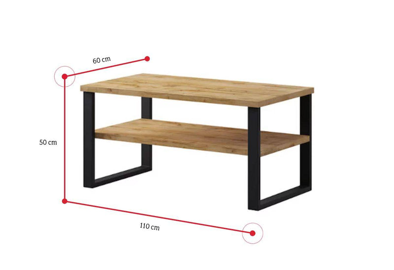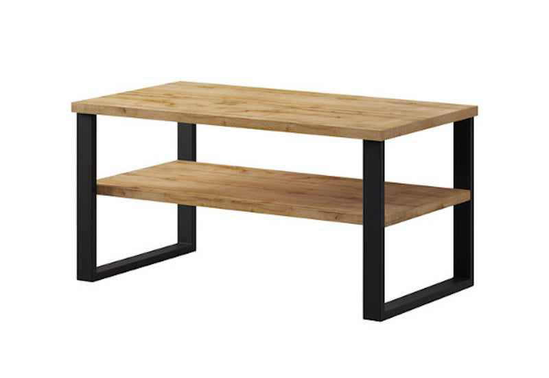 Konferenčný stolík SALA WM (99). Moderný dizajn na kovových nohách v čiernom matu. Je vyrobený z kvalitného materálu hrúbky 38mm. Opatreného ABS hranami, ktoré ochráni pred možným mechanickým poškodením a vlhkosťou. Stolík ponúkne aj odkladací poschodie.