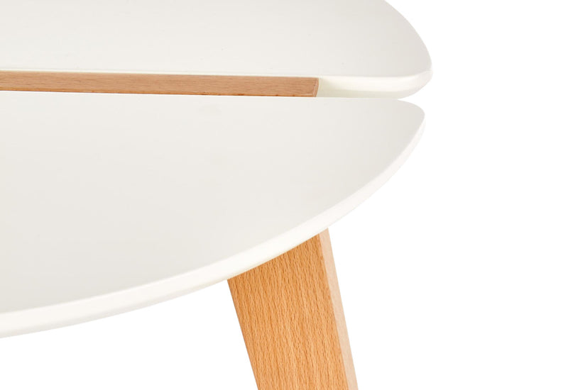 Konferenčný stolík STRUMA. Konferenčný stolík moderného dizajnu zaujme originálnou doskou, ktorá je vyrobená z lakovaného materiálu s ABS hranou. Nohy sú vyrobené z masívneho buku. Svojím moderným dizajnom a jednoduchým štýlom dodá vášmu interiéru pohodovú atmosféru. Vďaka svojim rozmerom nájde využitie aj v menších priestoroch. Konferenčný stolík ponúkame v dvoch farebných variantoch.
