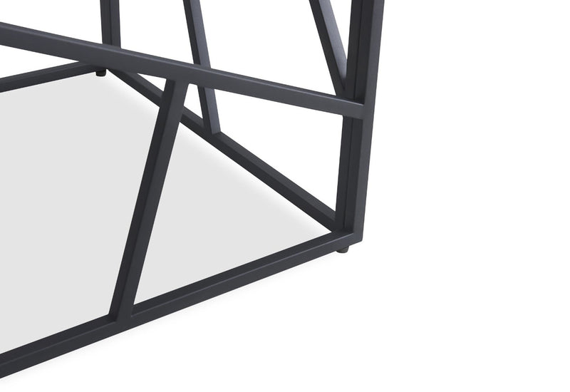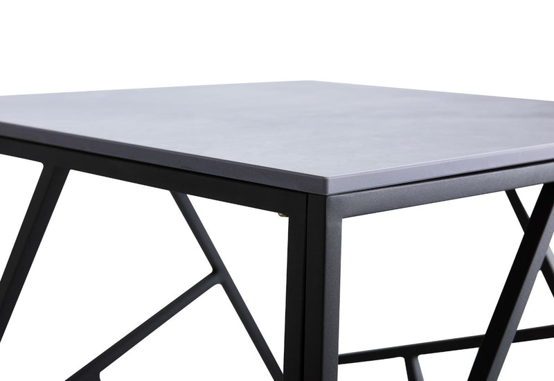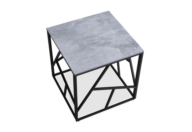 Konferenčný stolík VERISA. Moderný a elegantný vzhľad v industriálnom štýle. Nohy stolíka sú vyrobené z kovovej konštrukcie, doska zo sintra v dekore šedého mramoru. Poskytuje dostatočný odkladací priestor. Netradičný tvar konštrukcie s výstuhami dodávajú štvorcovému stolíku požadovanú stabilitu a pevnosť.
