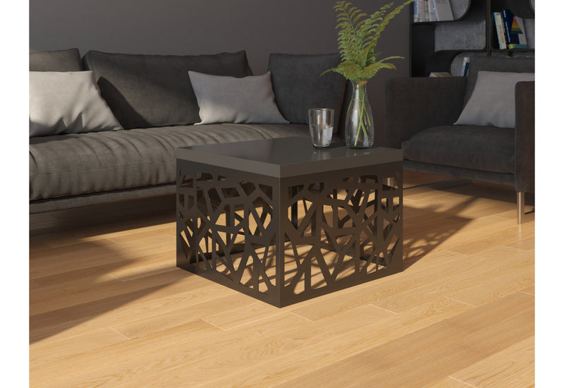 Konferenčný stolík VILETA. Pevnosť a stabilitu stolíka zaistí oceľový podstavec v čiernej matnej farbe. Vďaka štruktúre prevedenie je výrazným a dominantným prvkom. Štvorcová doska stola je vyrobená z kvalitného materiálu hrúbky 36mm. Poskytuje prostoronou odkladaciu plochu. Možnosť výberu z niekoľkých dekorov.