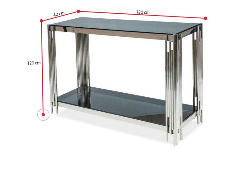 Konzolový stolík LOSSI C tvorí pevná kovová konštrukcia. Doska stola z tvrdeného skla dodá interiéru nádych luxusu. Nohy z kvalitného kovu zase požadovanú stabilitu a pevnosť. Veľkou výhodou je druhá odkladacia doska, ktorá sa nachádza na spodku nožičiek.